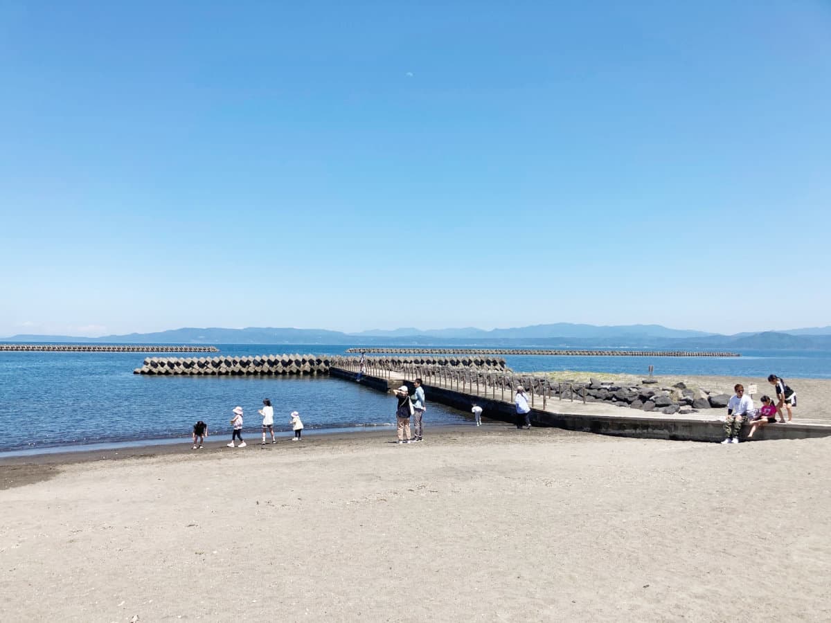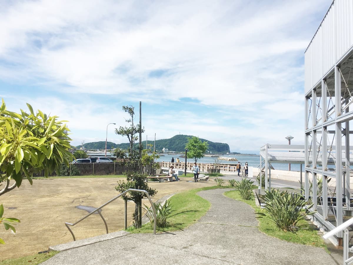 このエリアは湯の浜、または摺ヶ浜 (すりがはま) と呼ばれます。海辺の散歩道に公園、足湯、Wi-Fiも整備 されており、砂楽南側は海岸へ降りることができます。